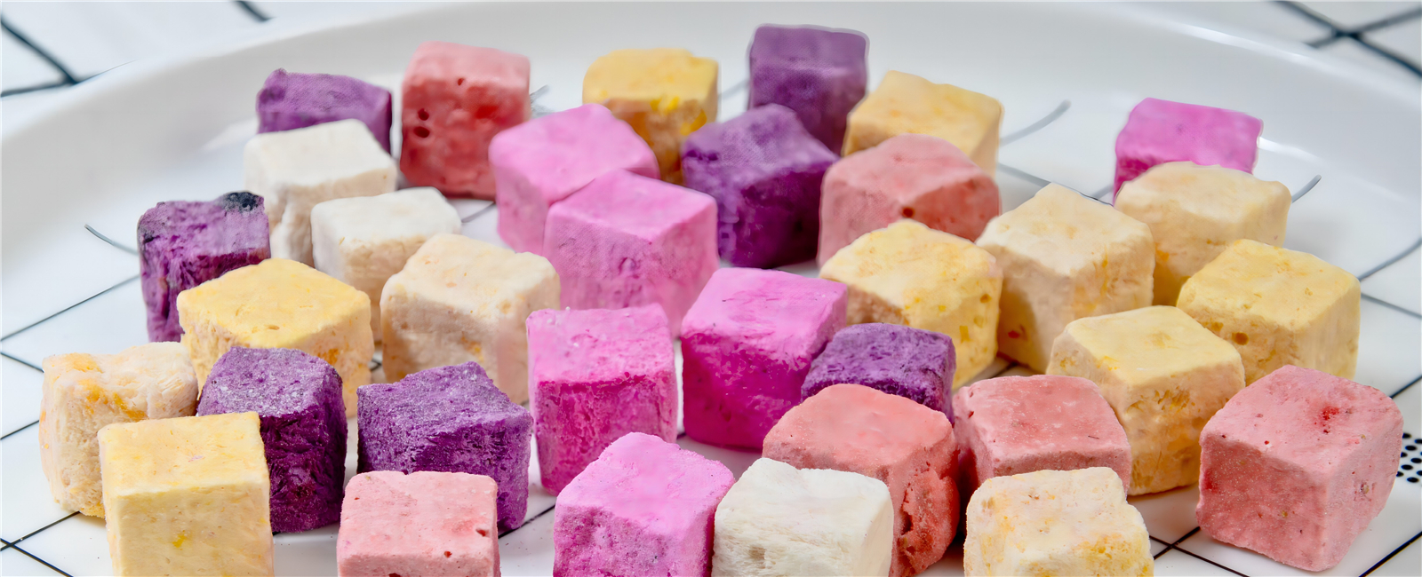 真空冷凍干燥這是一種物理脫水技術(shù),曾被應(yīng)用于航天食品的加工,它將食材急速冷凍至零下30℃至零下45℃,根據(jù)物料特性,再置入真空環(huán)境中,通過改變壓強(qiáng)達(dá)到低溫升華脫水的效果。在整個冷凍干燥過程中,食物的內(nèi)部結(jié)構(gòu)不會受到破壞,色、香、味、形、營養(yǎng)等也能夠完整保留。