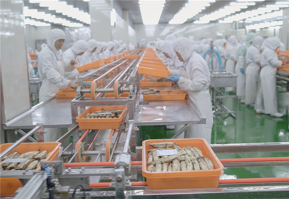 08生產線式鹽水噴淋凍結裝置,廣泛應用于海產品的快速凍結,主要凍品包括蝦、魷魚、沙丁魚等水產品,水產品一般是盒裝或者筐裝。凍品首先經過鹽水噴淋接觸式凍結,采用氯化鈉鹽水作為載冷介質,進行表層凍結,接著進入風冷速凍隧道進行深層凍結。鹽水噴淋可以快速降低溫度,實現快速凍結;鹽水系統(tǒng)采用SUS316不銹鋼板式換熱器,更耐腐蝕,相比較其他冷凍方式,換熱效率高,運行成本低,維護簡單方便。