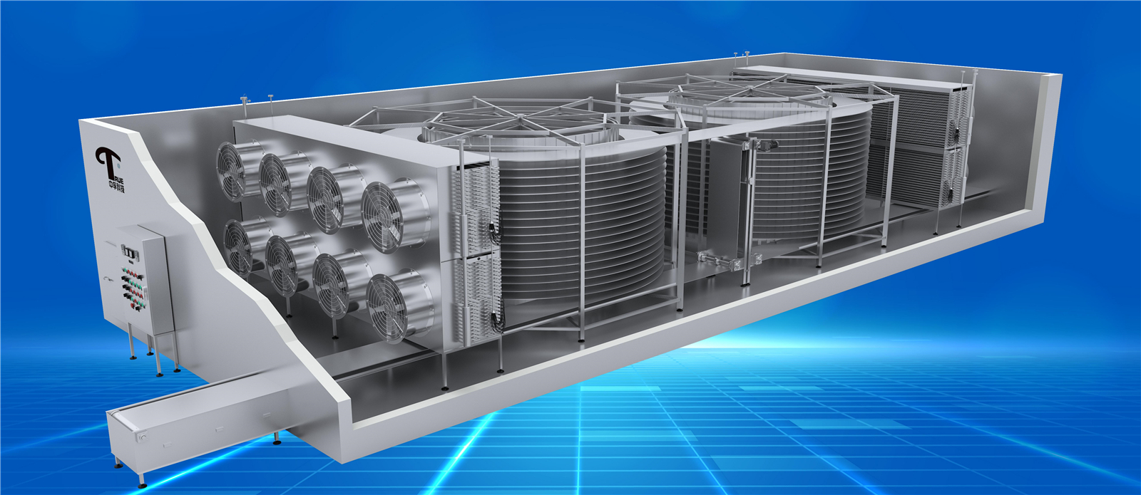 01螺旋式速凍機是一種高效的食品速凍裝置,一般分為單螺旋式單體速凍機、雙螺旋式單體速凍機,其結構緊湊,庫容量大,采用優(yōu)質不銹鋼網帶,高彈性不銹鋼絲,表面平整,承載能力強。產量根據客戶要求調整,螺旋式速凍機是一種高效,節(jié)能的速凍裝置,代表了當今速凍機市場的發(fā)展方向,是現代速凍食品企業(yè)常見的機型。 可應用于速凍水餃,湯圓,肉餅,分割肉類,整雞,魚蝦等海產品,調理食品以及其他規(guī)格的食品。